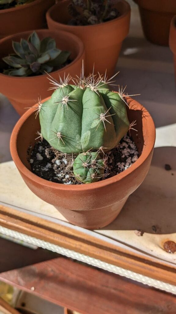 Before diving into propagation, it’s helpful to understand what makes the Chin Cactus tick. Growing to about 3 inches tall and wide, Gymnocalycium paediophilum is a small-growing species that thrives in well-draining soil and bright, indirect light. It’s also important to note that this cactus produces offsets, or “pups,” that branch out from the main plant – our ticket to propagation!
